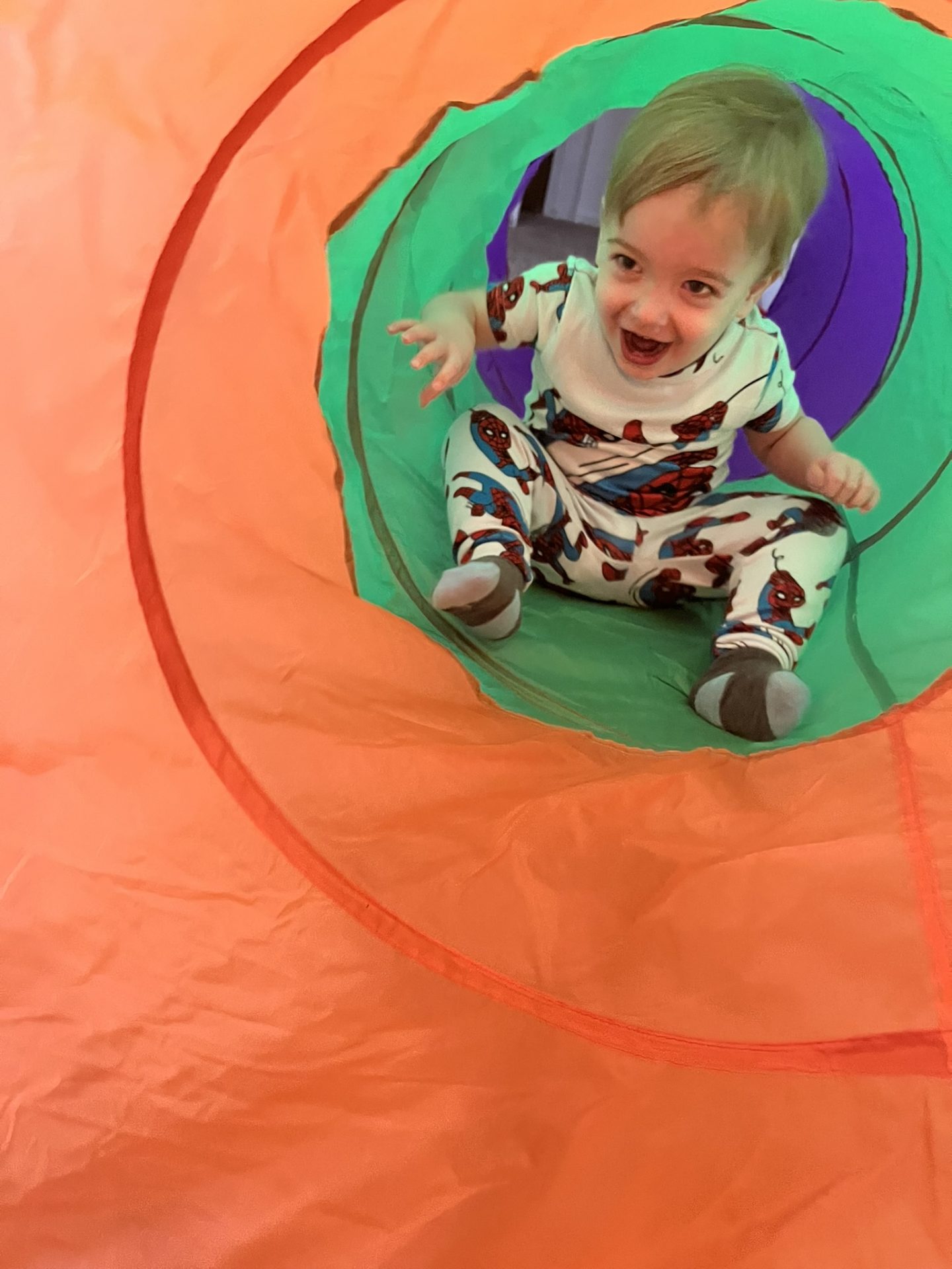 Henry would love any of the Little Tikes play equipment found at Walmart or Walmart.com such as the Little Tikes indoor/outdoor first slide, adjustable basketball hoop, T-Ball set, and similar active play options. He’s a kid who needs to move, climb, push, throw, and repeat. He also, of course, is obsessed with anything Baby Shark and has developed a strong appreciation for hats. He would also love any kind of flexible race car track especially as he has discovered that his foam climbing blocks can be repurposed into launch ramps for Hot Wheels. Henry is transitioning to size 3T shirts and pants and growing into a size 6 toddler shoe. If you’re considering a hat, please size up, the boy has an impressive head circumference.
